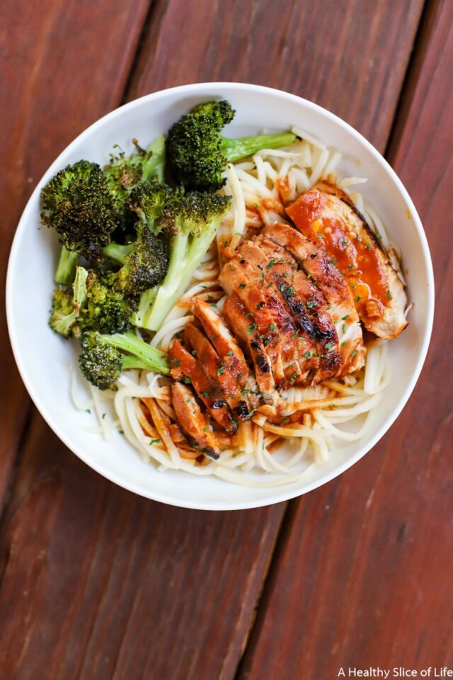 Marinated Chicken and Noodles over Palmini with Roasted Broccoli