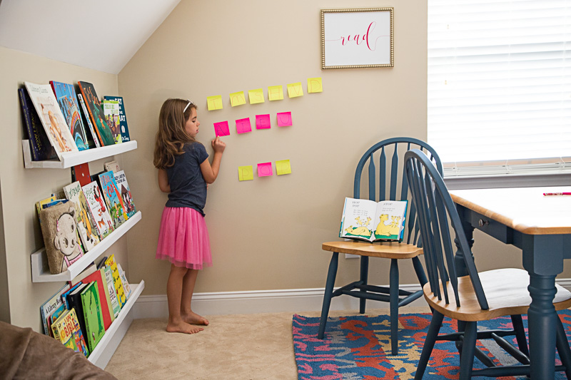 With vowels on pink post-its and consonants on yellow, we took turns enthusiastically spelling out words and taking things one step further, acting them out. Oh my goodness, giggles ensued and time flew!