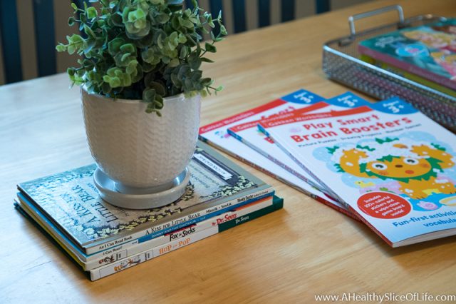 We are stocked! I have all our curriculum in hand, and I’m ready to go with a new stack of construction paper, tape, glue, scissors, paint, fat pencils… the works! Though most of the art supplies are tucked safely away inside our little storage area because… three year olds.