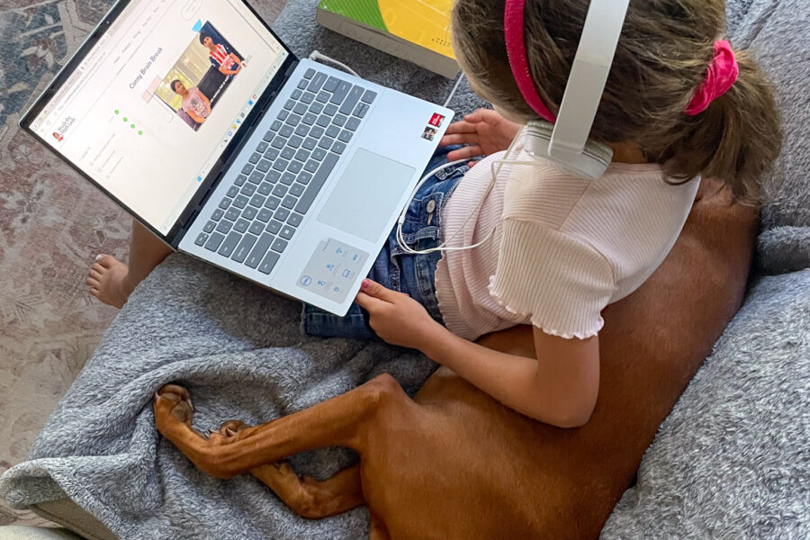 Ease. The kids can log in on their own and get started. Nicole teaches the lesson, then they flip to the corelating workbook pages and complete their work. If a concept is confusing, we simple stop where we are and practice until it’s understood.