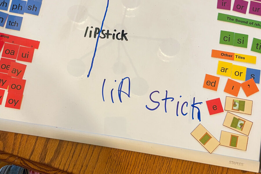 While the kids got dressed and brushed teeth I cleaned up and set up for lessons. We just finished our Farming and Food Gather Round Unit and switched back to our other curriculum (curriculum ands structure I’m trying this year details here). Hailey was able to do her IEW and Fix It Grammar on her own, so during that hour I worked with Kaitlyn on language arts. She was into it and to make her word cards fun, she acted out every word after reading it, meaning our lesson was full of silliness and laughter. The best.