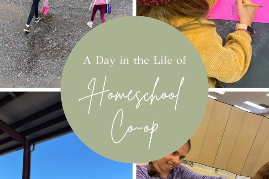 Co-op days for us are on Wednesdays, which works out well for our homeschool rhythm. We hit things hard Monday and Tuesday, have co-op Wednesdays, a full load Thursday, and a lighter Friday. I’m firmly in the camp of “learning is a lifestyle and school is always happening” but if you’re curious about lesson-focused days, that is our typical schedule.