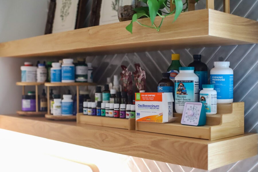 We do most of your tips and zinc and from that lovely kit we both have! – Bella Donna sore throat, arnica swelling and heparsulph sore throat. Love how you have all your things on a visible shelf, not stuffed in a cabinet like I do!