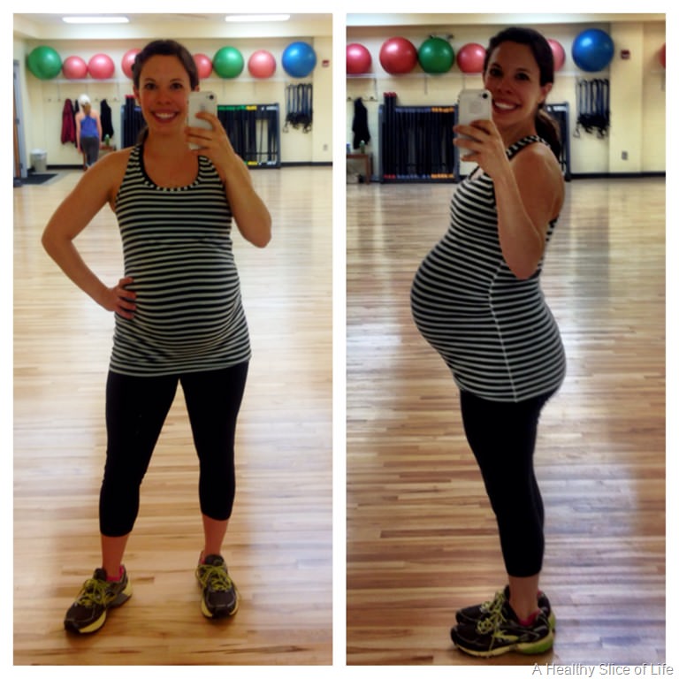 For some reason, I thought you were due at the end of May, but it looks like she might make her appearance in just a few short weeks – exciting! Mad props to you for still going to the gym!