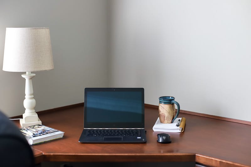 - Have a dedicated work space. I love curling up on the porch couch with my computer, and that’s fine for when I’m writing, but when I need to get other work done, I know I work best in my office. It is sparse, which for me works well because of less distraction. I also have my top priority (FAMILY) written in calligraphy and on display so I can remind myself of why I’m working hard every time I look at it.