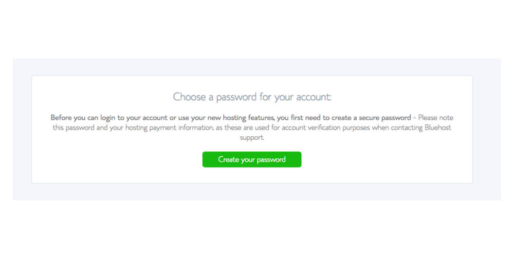 Lastly, you will create your password and then log in into Bluehost using the password you selected.