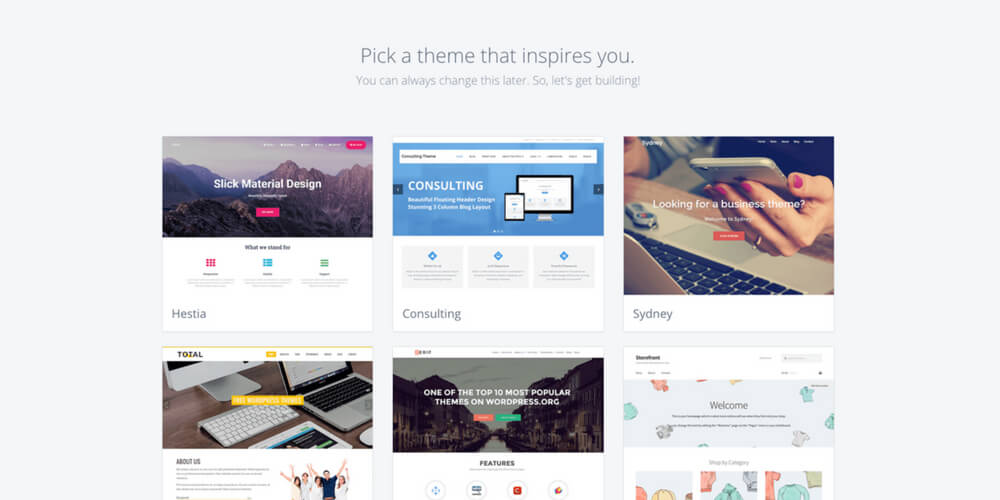Pick your theme, and don’t worry, you can easily change themes at any point from your WordPress Dashboard.