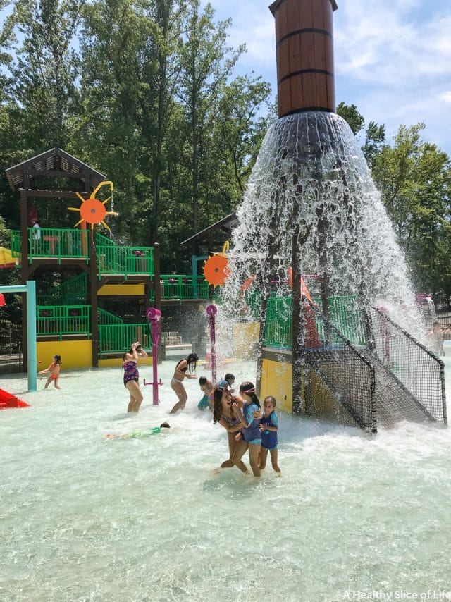 After all the running around in the morning, we decided to just set up shop at the splash pad for the afternoon. We were thrilled that it was back up and running after the repairs, and it ended up being even more fun than we expected. We (yes, David and me too!) spent a couple hours chasing each other through the various water obstacles, sliding down the water slide, and squirting each other with the water guns. It was a blast!
