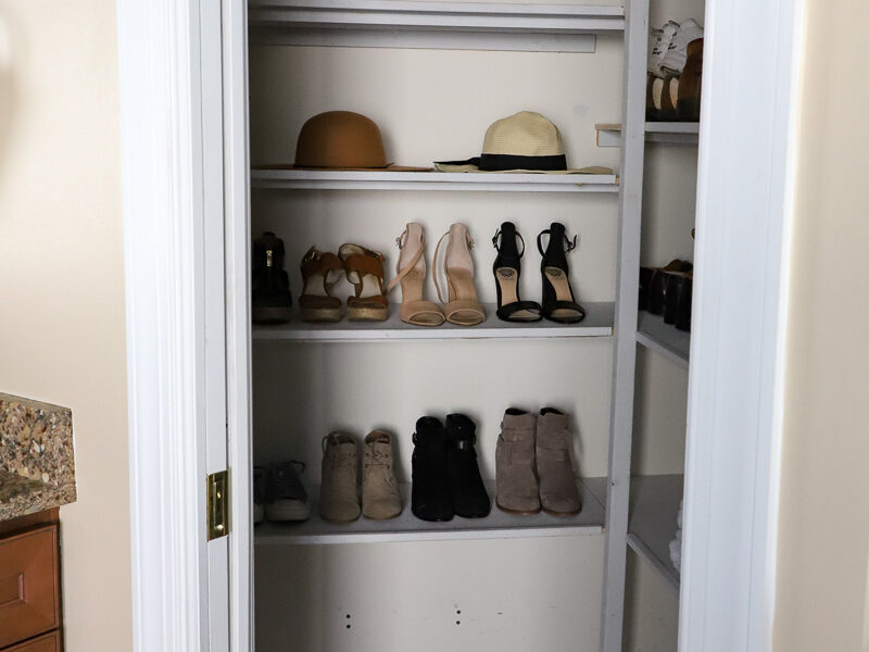I still haven’t finished A Simplified Life because I’m still working my way through the first round of home organization tasks. I’m about halfway through them at this point, having completed our shoe closet (see below) on Sunday afternoon. Though I still have a ways to go, I can confirm that the joy I feel as I check each task off the list only snowballs. It’s so easy to focus on more, but embracing less is freeing. Less clutter. Fewer choices. Decreased stress. I’ve been bitten by the bug and I see it sticking around for a while because having less is making me feel so much lighter.