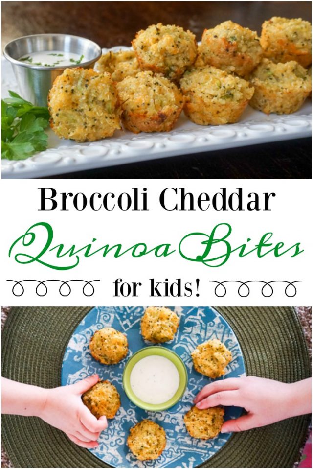 These Broccoli Cheddar Quinoa Bites come together quickly and easily and are the perfect size for little hands.